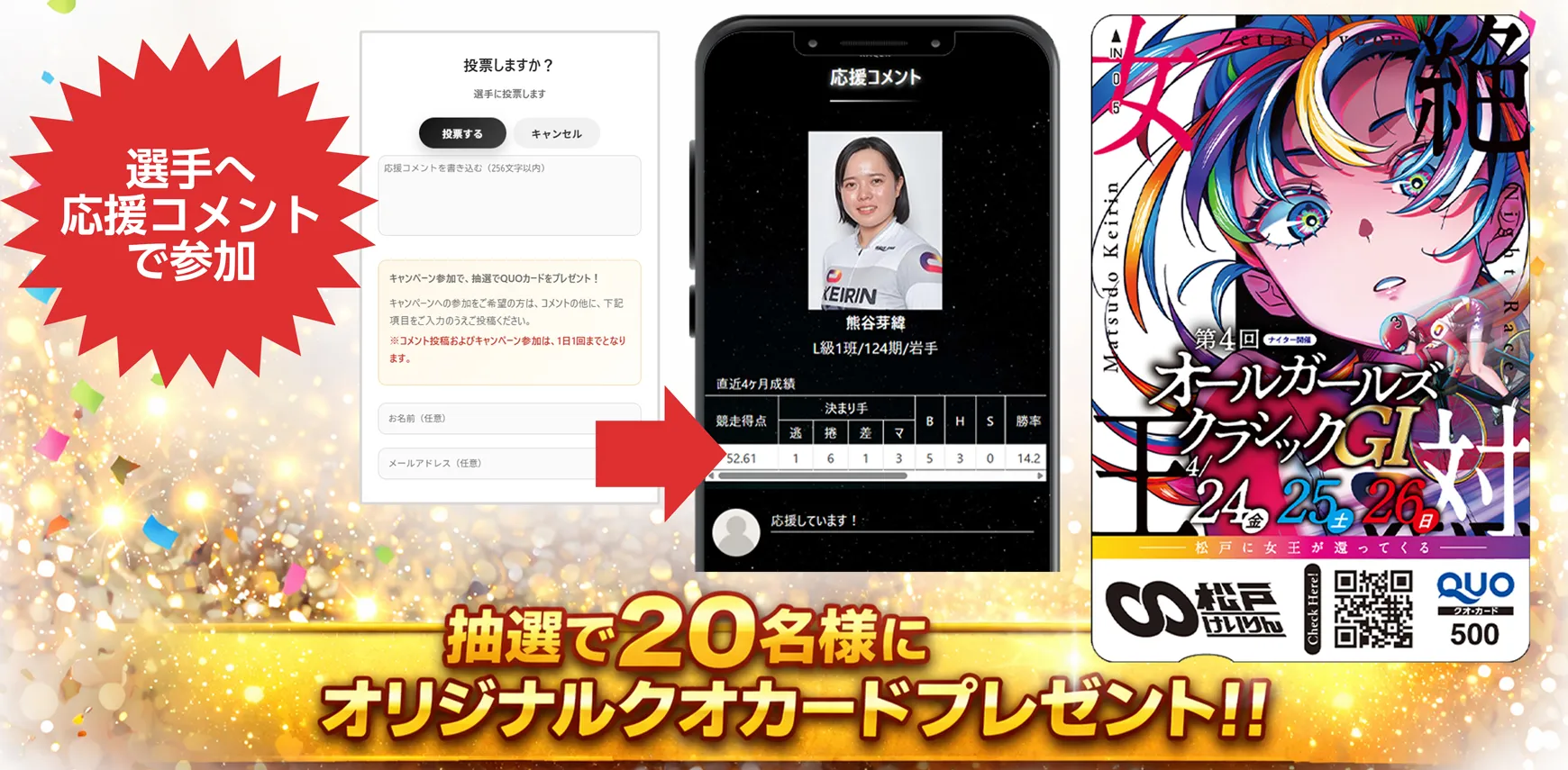 期間中、応援したい選手にコメントを投稿すると、キャンペーンにご参加いただけます。
